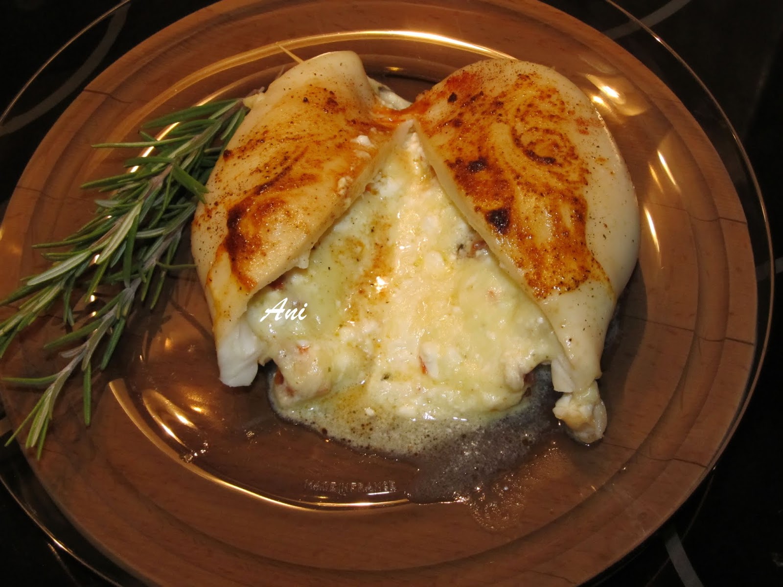 - Пълним калмарите със сместа и ги затваряме с клечки за зъби.